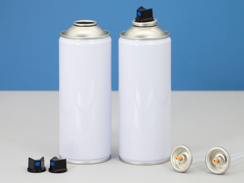 Aerosol kutuları, vanalar ve nozullar dahil olmak üzere eksiksiz bir çözüm paketi.