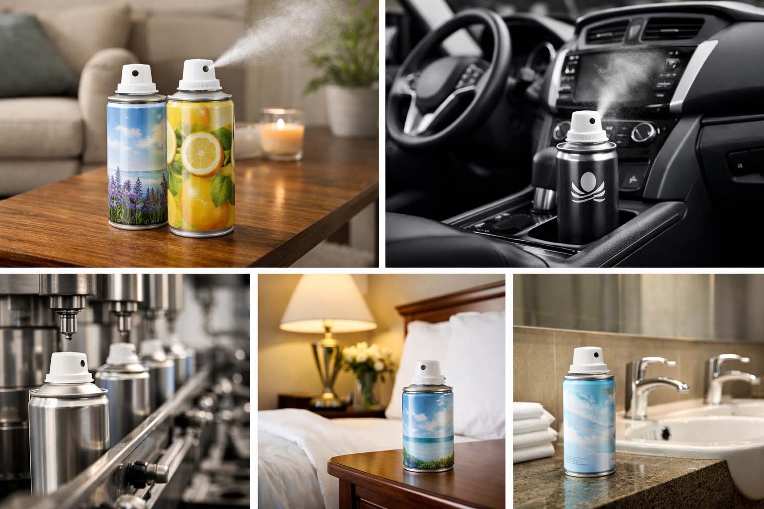 Çeşitli ambalaj malzemeleri arasında, teneke aerosol kutuları, oda parfümü ürünleri için en yaygın kullanılan çözümlerden biri olmaya devam etmektedir. Valf ve püskürtme ucunun birleşimi, kullanım kolaylığının yanı sıra güvenlik ve uzun vadeli güvenilirlik de sağlamaktadır.